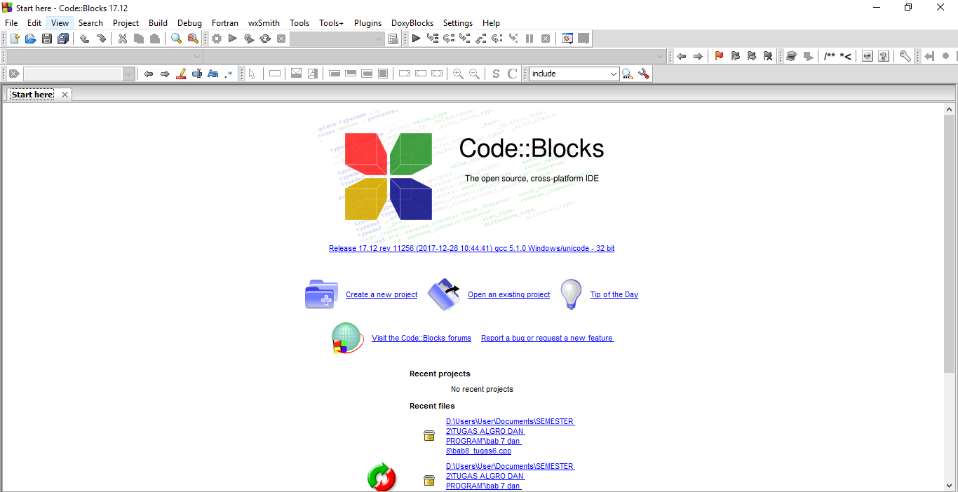 Langkah 1 : Bukalah aplikasi CodeBlock atau bisa juga aplikasi Dev-C++.