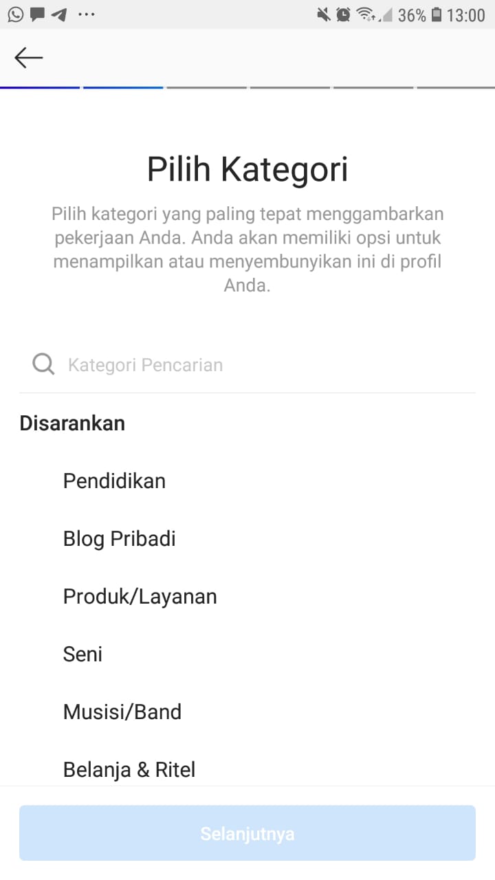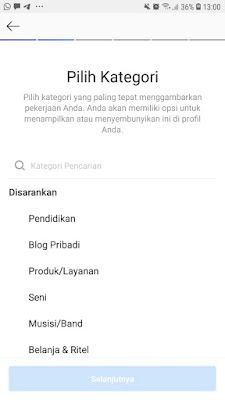 7. Lalu kamu akan diminta untuk Memilih Kategori Bisnis, pilihlah salah satu kategori kemudian klik Selanjutnya/Next.