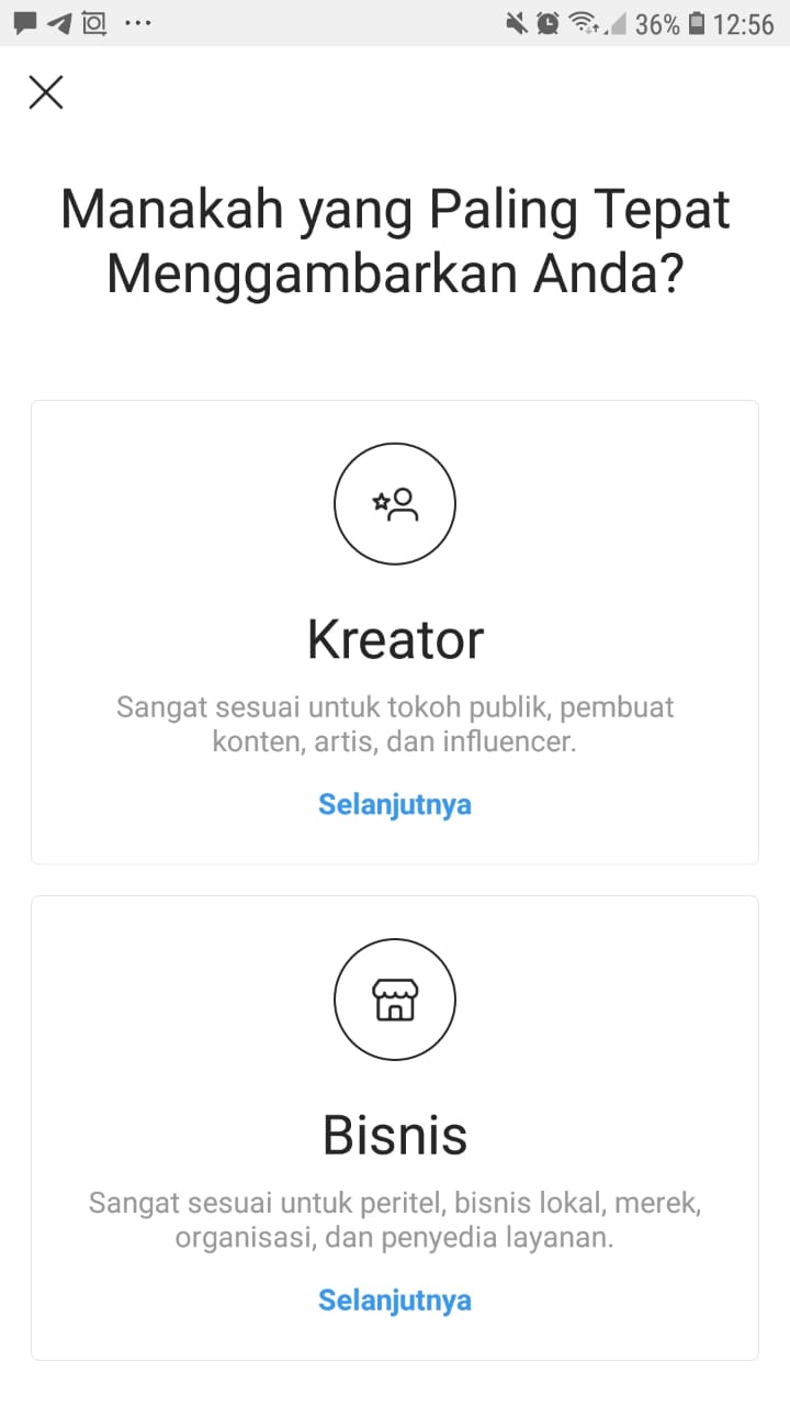 6. Lalu kamu akan mendapatkan pilihan Manakah yang Paling Tepat Menggambarkan Anda, maka pilihlah Ikon Bisnis.