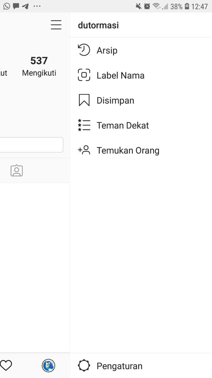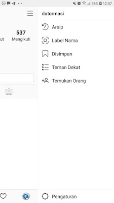 3. Pada halaman profil tersebut, klik Ikon garis tiga pada bagian sisi pojok kanan. Lalu pilih Pengaturan/Settingan.
