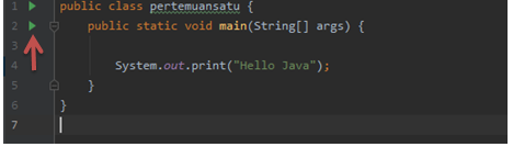 - Untuk menjalankan program tersebut, maka tekanlah tanda run dengan warna hijau disebelah code editor. Seperti gambar di bawah ini