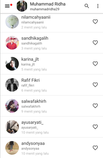 3. Setelah login, kamu akan melihat akun pengguna lain dari following kamu yang berbentuk list.