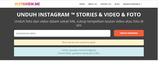 3. Setelah masuk situs tesebut, masukkan nama pengguna atau username yang ingin di download stori instagramnya. Kemudian klik Unduh Sekarang.