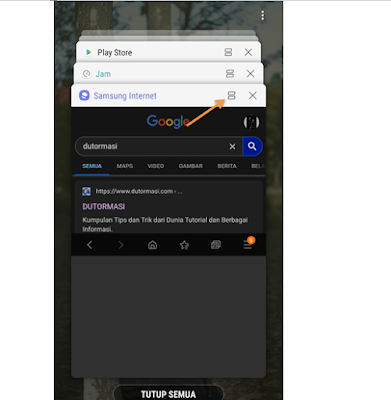 Lalu tekanlah icon close atau silang (X) tersebut, maka secara otomati akan mengakhiri mode layar terpisah pada smartphone kamu.