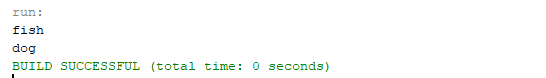 Pada saat peliharaan [0] yaitu “fish” masuk pada perulangan , maka akan masuk pada percabangan if (value.contains (“a”)) continue , dikarenakan fish tidak memiliki huruf “a” maka fish dapat dijalankan dan merupakan output.