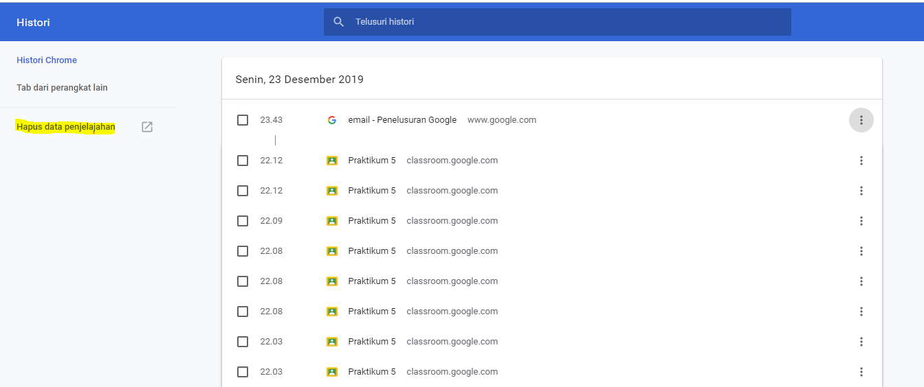 Cara 1 Menghapus History Satu Persatu pada Google Chrome