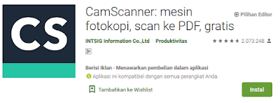 Merupakan aplikasi yang membantu mahasiswa untuk men-scan berbagai berkas dalam bentuk digital. Keuntungan aplikasi ini bagi mahasiswa sangatlah berpengaruh, karna yang biasanya mahasiswa sering bolak-balik untuk fotocopy dan men-scan file dengan adanya aplikasi ini sangat mempermudah mahasiswa dan intinya sih tidak mengeluarkan biaya bulanan kan. wkwkwk.