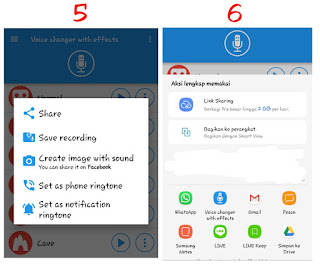 >Untuk mengirim rekaman effect suara , anda bisa mengklik titik tiga pada aplikasi ini.