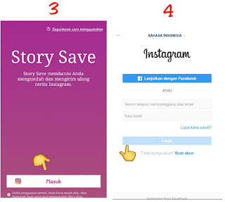 >Setelah anda mengklik Masuk , halaman aplikasi Story Save akan berpindah kehalaman Login.