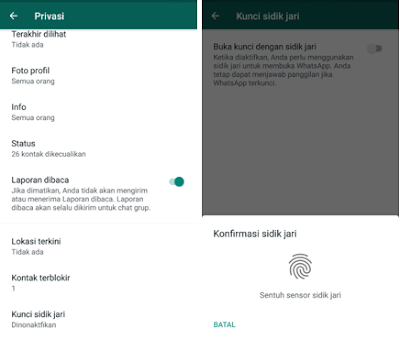 Fitur fingerprint lock atau kunci sidik jari ini digunakan untuk mengamankan pesan whatsapp kita, jadi bagi kalian yang ingin mengamankan pesan pesan dari tangan teman kalian yang usil maka fitur ini sangat di rekomendasikan. Untuk pengguna IOS sudah lebih dulu mendapatkan fitur keamanan yang bisa melalui sidik jari atau Touch ID maupun Wajah atau Face ID yang sama dirilis pada tahun 2019 ini.