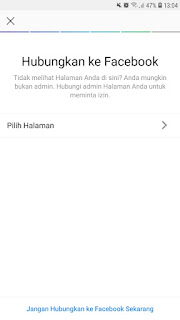 7.Langkah selanjutnya yaitu kamu diminta untuk menyambungkan akun bisnis instagram kamu ke halaman facebook. Tetapi ini opsional, boleh kamu gunakan atau tidak. Jika tidak, maka kamu bisa klik pada bagian bawah yaitu Jangan hubungkan ke facebook sekarang atau dont connect to facebook.