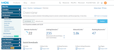 Website kedua yang terbaik untuk mengecek DA dan PA pada sebuah website adalah analytics.moz.com. Kenapa ini diletakkan pada posisi kedua? karena pengecekannya yang lumayan ribet dibandingkan website diatas. Untuk pengecekan DA dan PA pada website ini, anda harus terlebih dahulu mendaftarkan email dan password anda agar bisa login dan mengecek DA dan PA website anda.