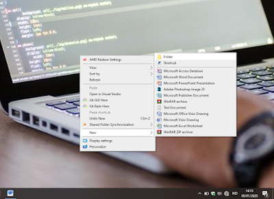 2. Kemudian klik kana pada area kosong dekstop, dan pilihlah opsi New.