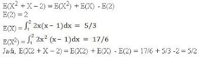 4.Permintaan minuman dalan liter per minggu dinyatakan dalam fungsi variable random g(X) = X2 + X -2, dimana X mempunyai fungsi padat :