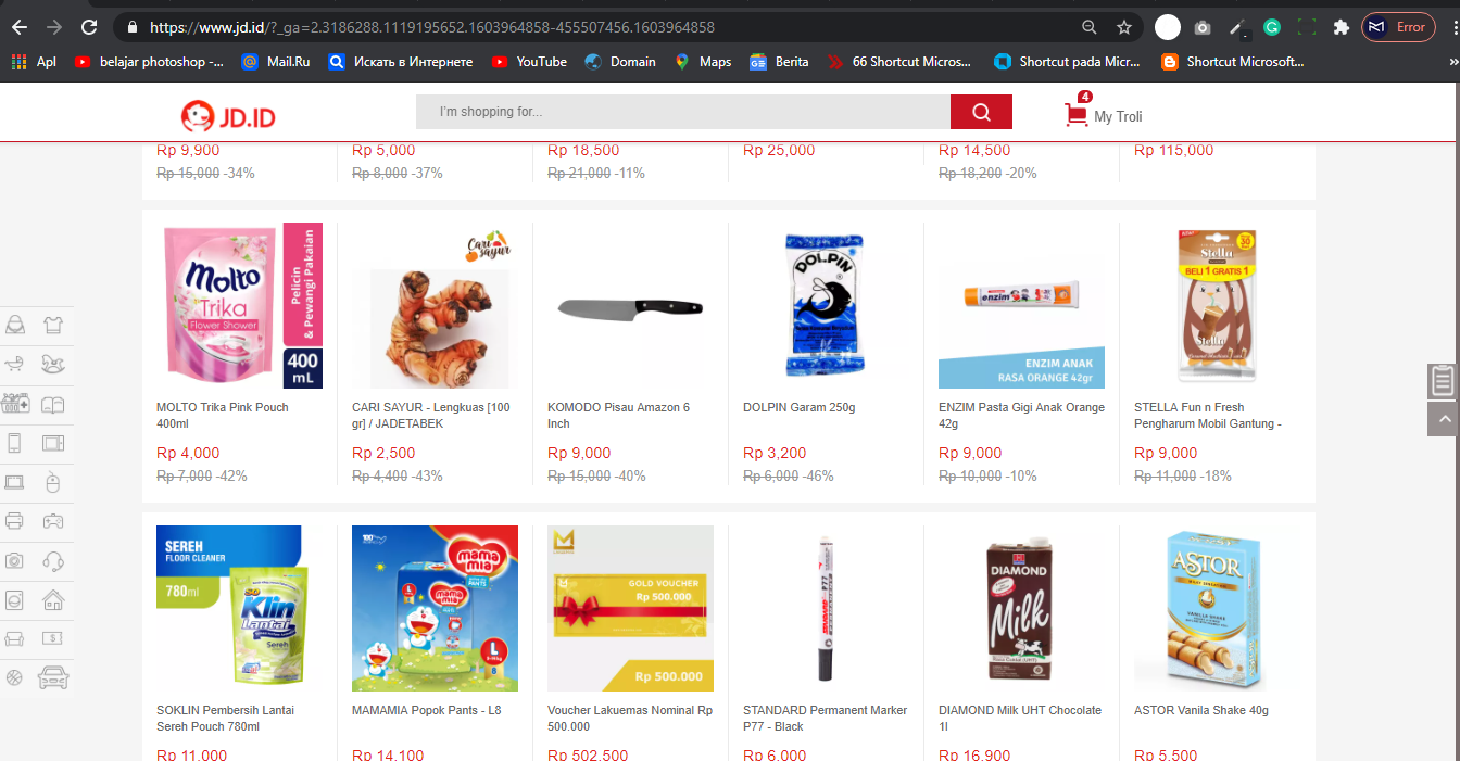 Oke baiklah, disini kita akan membuat satu kasus marketplace dan kita cari apakah 14 jenis layanan tersebut sudah terdapat pada kasus marketplace. Dan kali ini dutormasi memilih marketplace JD.ID. Berikut adalah 14 jenis layanan pada marketplace JD.ID :