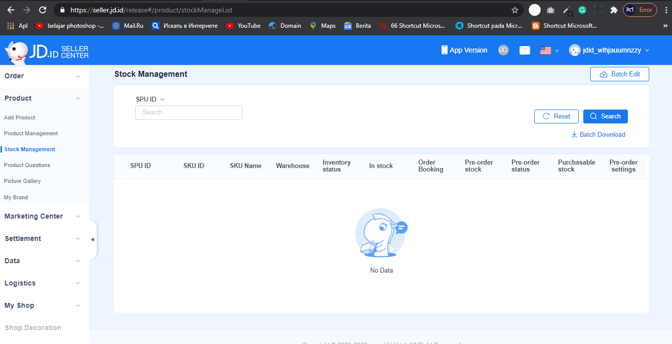 Inventory management adalah layanan yang disediakan oleh E-commerce untuk memudahkan pengelola toko online atau penjual dalam melakukan manajemen data inventori barang yang dijual. Inventori ini dapat meliputi jumlah stok barang yang masih ada di gudang, stok barang yang terjual dan stok yang dikembalikan ke supplier termasuk juga biaya didalamnya. Pada JD.ID sudah menyediakan layanan ini dengan baik sekali, yaitu sebagai berikut :