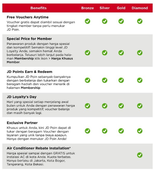 Layanan loyalty management atau manajemen loyalitas bertujuan untuk membantu pemilik usaha online dalam proses manajemen loyalitas yang diberikan kepada konsumen. Bentuk loyalty ini dapat berupa pemberian hadiah atau harga yang menarik dan kompetitif, yang setidaknya dapat membantu atau mendongkrak pemasukan dari sisi penjualan produk secara online pada toko online tersebut. Pada JD.ID menyediakan JD Poin, Poin ini dapat ditukarkan dengan voucher dan adanya manajemen loyalty untuk meningkatkan status membership konsumen (baru, bronze, silver, gold, dan diamond).