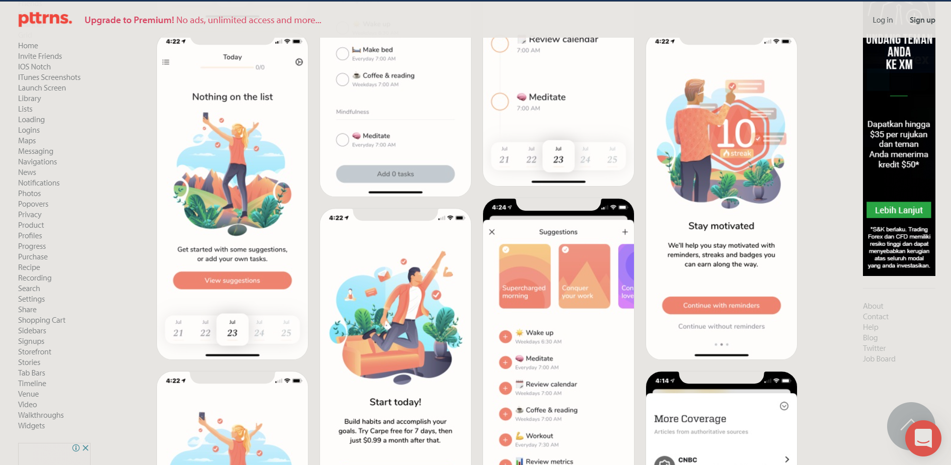 Situs ini walaupun cukup unik tapi situs ini adalah situs dimana kumpulan desain yang diambil dari aplikasi iOS dan Android yang kece. Ada banyak konten yang tersedia sejak tahun 2012 yang bisa dipilah berdasarkan puluhan kategori, langsung di cek aja