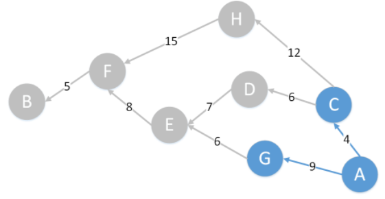 Dengan menggunakan algoritma greedy dari graph yang diatas, maka didapatkan lah hasil akhir dari graph nya. Maka Jalur terpendek yang didapatkan adalah A-C-D-E-F-B. Namun sebenernya jalur terpendeknya adalah A-G-E-F-B yang mana algoritma greedy tidak selamanya memberikan solusi yang optimal karena local maximum setiap langkahnya tanpa memerhatikan solusi dari keseluruhan. Inilah contoh gambar yang memperlihatkan algoritma greedy yang kurang memberikan solusi optimal.